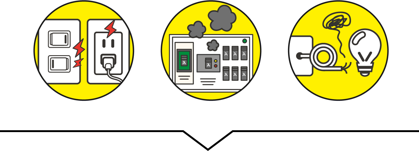 過電流等によりブレーカーが遮断される場合の、容量の異なるブレーカーへの取り替えはサービス対象外です。